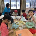 自然学校4日目午前 投稿日時: 2024年6月27日 投稿者: sasayama 竹野子ども体験村でオリジナルキャンドルを作りました。 まずは海岸で貝殻、シーガラス、砂など材料を集め、レイアウトを工夫して瓶に並べ、芯を入れ、ロウを流し入れます。自然学校の思い出が詰まった作品に仕上がりました。