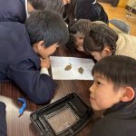 会の後半では越冬幼虫の観察を行い、観察の方法を2年生に優しく教えてあげていました。