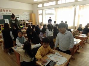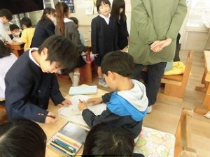 今日は入学説明会と体験入学会を行いました。1年生教室では来年入ってくる後輩たちにちょっとお兄さんお姉さんになって優しくいろいろと教えることができました。まずは名前を書く練習をしました。手を持って教えてくれる子や横でそっと見守ってる子などいろいろな対応でした。また1年生による音読も行いました。4月になってみんな元気に入学してくれるのが楽しみです。