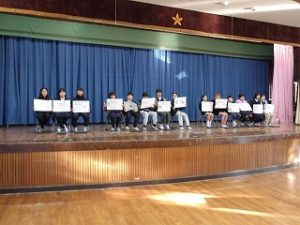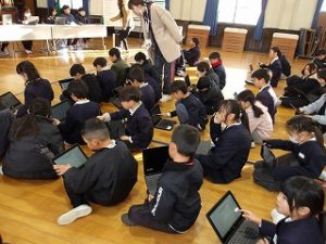 今日は令和8年度の児童会選挙を行いました。多くの児童が立候補しました。立候補した子たちは「元気な挨拶ができるようにしたい」とか自分が考えた「みんなが楽しめるような児童会行事」について提案をしました。今回は1人1台タブレットを活用して投票を行いました。新しい形の児童会選挙に試みました。