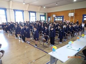 始業式では今年頑張ることとして、「どんな自分になりたいか」を考えようと話をしました。また集団生活を行う上で多様な価値観を認め合いながら過ごすことの大切さも話をしました。子供たちが安心して通える学校となるよう教職員一丸となって取り組んでいきます。地域・保護者の皆様今年度もよろしくお願いいたします。