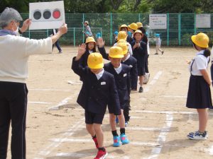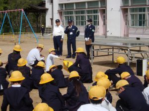4月21日(火)の2時間目に、幼稚園児も一緒になって交通安全教室を行いました。篠山警察署や交通指導員の方にもお世話になり、徒歩通学における安全上の注意点を確認しました。交通委員だけでなく実際の歩行者も自分の目でしっかりと確かめることが大切であると話を聞きました。実際に地区ごとのグループで通行訓練を実施しました。みんな、しっかりと話を聞き、交通ルールを守って訓練を行っていました。