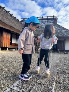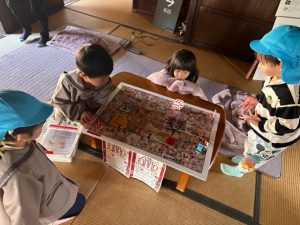 幼稚園で丹波篠山市武家屋敷安間家史料館に行ってきました。ちょうど安間家史料館で「昔ながらの日本らしいおもちゃで遊んでみませんか」というお正月あそびのイベントが開催されていました。園児たちも行きたーいと言ったので行ってきました。すごろくや福笑いカルタけん玉など楽しい遊び道具がいっぱい。少し寒い日でしたが、園児たちは夢中になって遊んでいました。