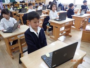 今日はタブレットを使ってアンケートに挑戦しました。先生が映し出した画面を見ながらひとりで挑戦です。パスワードを入力してログインします。なかなかうまくいかない子もいましたが、お友達の協力もあり無事ログイン。クラスルームにも入る練習をしました。これから、いろいろなことができるように少しずつ練習していきます。