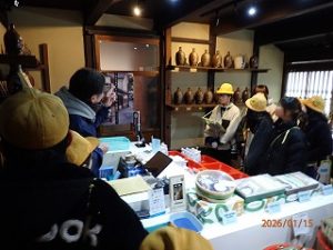 5年生は、2学期丹波篠山市の伝統的な食に関わることをメインに学習を進めてきました。3学期は地域にある伝統的な建物や文化に触れる活動に取り組んでいきます。今回は、町並み保存会の方々に河原町の伝統的建造物群保存地区について案内していただきました。身近ではあるものの今まで意識してこなかった町なみにいろいろな意味があることを少し学びました。お寺が3つもあること。2階の高さが低い家は昔ながらの建物であること。格子の幅は、京都に近い側が広いことなど子どもたちはとても興味深く話を聞くことができました。最後には普段なかなか中まで見ることができない川端家の中を見せていただきました。入口から奥まで100メートル以上もある敷地にとても驚いていました。