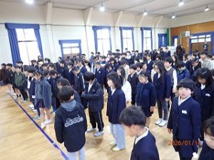 あけましておめでとうございます。今日から3学期のスタートです。教室には子どもたちの元気な声が戻ってきました。各教室を回ってみると久しぶりに出会った友だちと冬休みの話で各教室盛り上がっていました。