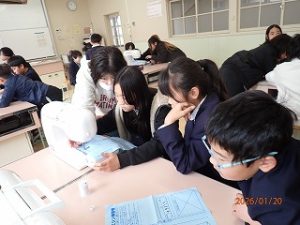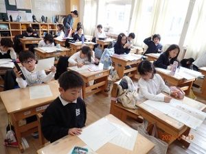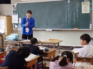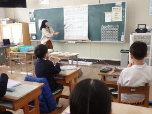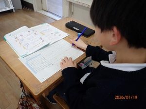 国語の学習で「年賀状に書いたゆめ」の学習をしています。始業式でも話をしましたが夢や希望を持つことはとても大切なことです。バトミントンの奥原さんのことが書かれています。奥原選手の挑戦がまだまだ続いていくのは? という問いに対して子どもたちは考えていました。