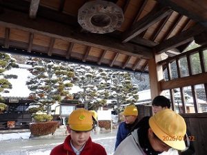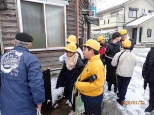 今日は6年生が伝統的建造物群保存地区に行ってきました。昨日からの寒波で実施が危ぶまれましたが、朝の河原町の町並みは雪をかぶっておりさらに素敵な街並みを見学することができました。6年生はこれまでに「お城ガイド」に取り組んできました。篠山城について調べ、観光客や地域の人に発表をしました。篠山には知っておきたい素敵な場所がたくさんあります。篠山のことをもっと知ってほしいと町並み保存会の方に協力いただき、案内していただきました。川端家は特に印象深かったようで、「この家すごいなあ」と話をしていました。最後の感想では「今まで近くに住んでいるけれど知らなかった」とあらたな発見ができ、よい機会となりました。6年生は卒業まであと2か月です。これからも丹波篠山の魅力をいっぱい知って、自分たちの住んでいるふるさとを好きになってほしいと思います。