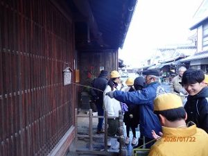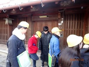 5年生は、2学期丹波篠山市の伝統的な食に関わることをメインに学習を進めてきました。3学期は地域にある伝統的な建物や文化に触れる活動に取り組んでいきます。今回は、町並み保存会の方々に河原町の伝統的建造物群保存地区について案内していただきました。身近ではあるものの今まで意識してこなかった町なみにいろいろな意味があることを少し学びました。お寺が3つもあること。2階の高さが低い家は昔ながらの建物であること。格子の幅は、京都に近い側が広いことなど子どもたちはとても興味深く話を聞くことができました。最後には普段なかなか中まで見ることができない川端家の中を見せていただきました。入口から奥まで100メートル以上もある敷地にとても驚いていました。