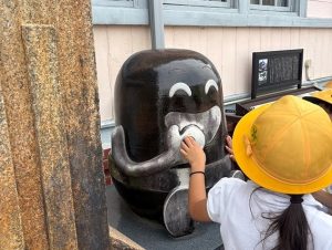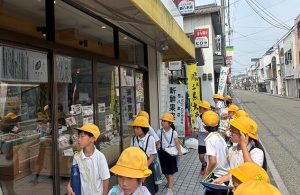 今日、2年生は生活科の時間に町探検に出かけました。いつもは観光客でいっぱいの街中ですが、朝が早かったせいか、ほとんど見かけることはありませんでした。そのかわり、開店準備を忙しくされておられる様子が見られました。